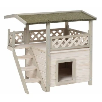 Das Untergeschoss mit integrierter Höhle bietet einen idealen Rückzugsort zum Relaxen und Schlafen. Ebenfalls ist deine Katze dort vor Wind und Wetter geschützt. Über eine Leiter ist das Obergeschoss einfach zu erreichen. Von dort hat dein Liebling alles genau im Blick oder kann einfach auf der Liegefläche entspannen. Das stabile Bitumendach bietet deiner Fellnase zusätzlichen Schutz vor Sonneneinstrahlung. Inklusive Montageanleitung für eine einfache und schnelle Montage.