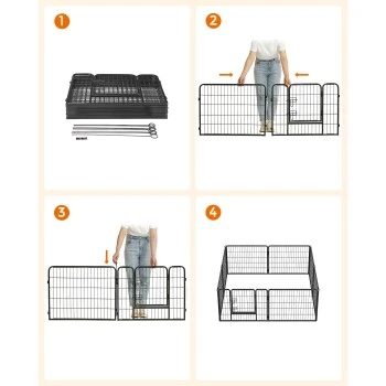 FEANDREA L Hundezaun 8 Platten Schwarz Schwarz 1,6 M, 1,6 M, 60 Cm