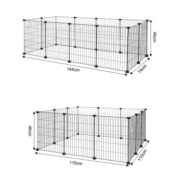Wir empfehlen den Aufbau des Nagerkäfigs laut der mitgelieferten Aufbauanleitung mit den Maßen 144x74x46 cm, jedoch können Sie das Gehege auch individuell aufbauen und mit dem Kauf mehrerer Gehege sogar erweitern. Optimal genutzt wird dieser Tierauslauf in Verbindung mit einem Stall. Bitte achten Sie immer auf genügend Auslauf Ihrer Kleintiere.