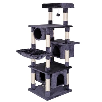 - MAßE UND FARBEN. Dieses hochwertige Katzenzubehör verfügt über die Maße 55 x 50 x 155 cm, die Höhlen über 30 x 30 x 25 cm/50 x 30 x 25 cm und die Plateaus über 55 x 30 x 8 cm. Das langlebige Katzenspielzeug ist in den Farben Hellgrau und Dunkelgrau erhältlich.