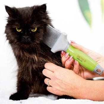 Die Premium Zupfbürste bietet mit dem flexiblen Kopf optimalen Komfort beim Bürsten. Dank unterschiedlicher Bürstenseiten, welche zur Differenzierung farblich markiert sind, eignet sich die Premium Zupfbürste für das Entfernen von Verfilzungen und für langes Fell (schwarze Bürstenseite) sowie für kürzeres oder feines Fell im Gesicht oder an den Pfoten (graue Bürstenseite). Für eine einfache Reingung der Bürstenseiten können diese herausgeklappt werden. Der ergonomische Gelgriff sorgt für zusätzlichen Komfort beim Bürsten.